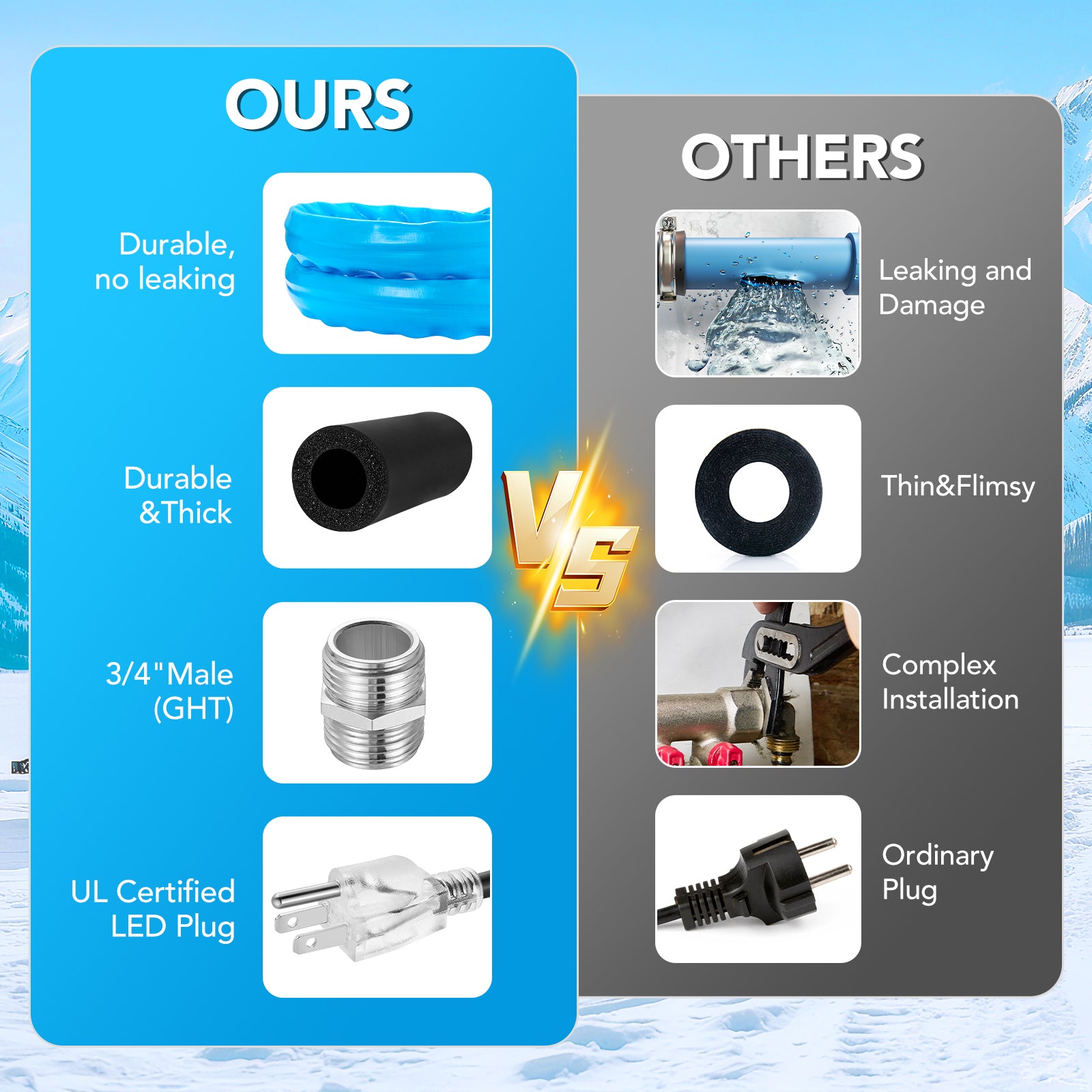 ➤【Efficient Energy Use】 : Featuring an energy-saving thermostat, this Heated Hose for RV only heats when necessary, reducing your electricity costs. Crafted from eco-chic PVC and ETL American standard-approved oxygen-free pure copper, This is a power product that is good for the planet and your wallet.